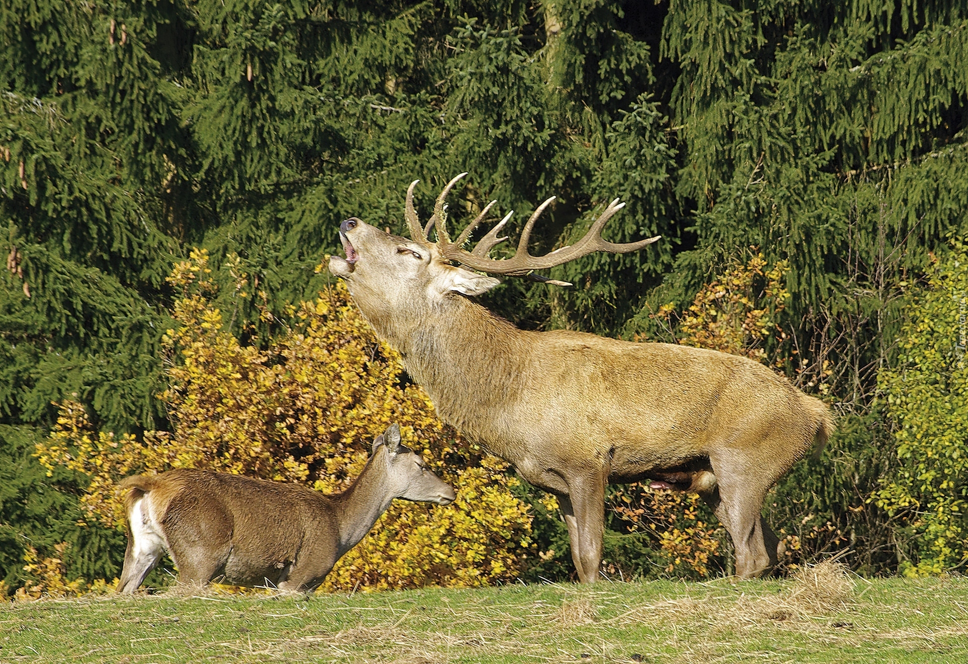 Edytor tapety: Jeleń, Łania, Las