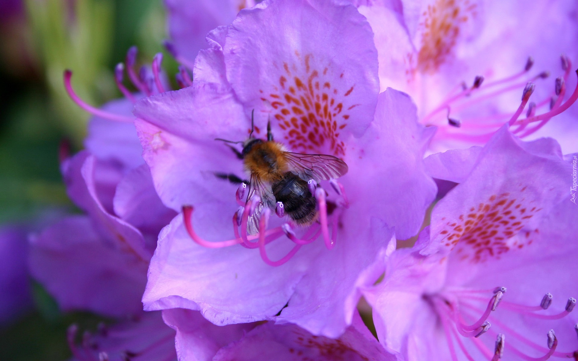 Edytor tapety: Fioletowe, Kwiaty, Rododendron, Pszczoła