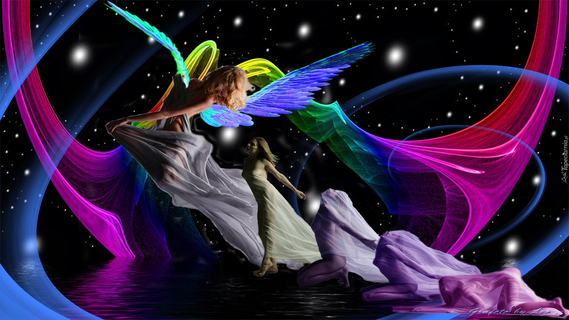 Edytor tapety: Wstęgi, Anioł, Skrzydła