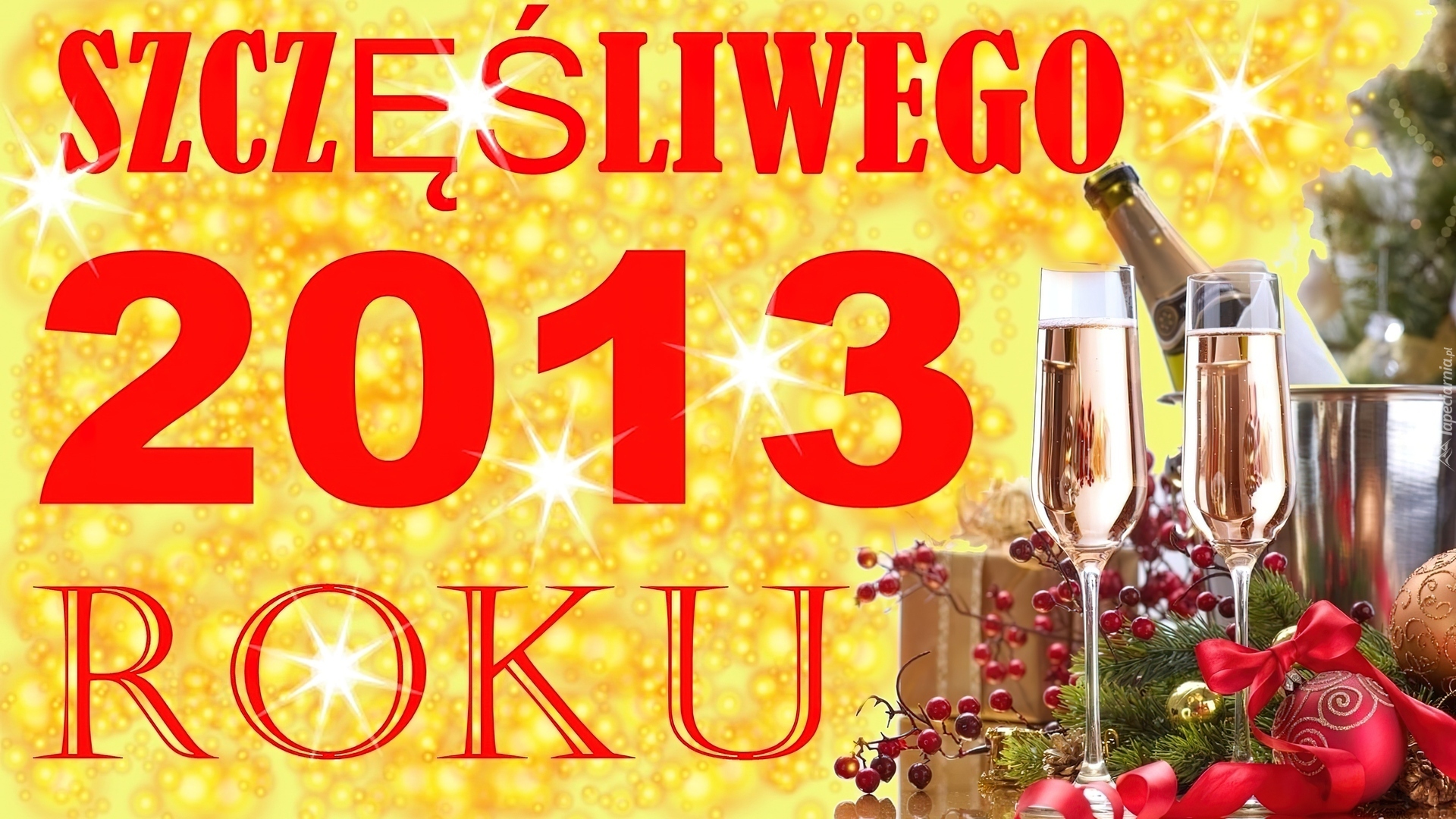 Edytor tapety: Nowy Rok, Szampan, Kieliszki, 2013