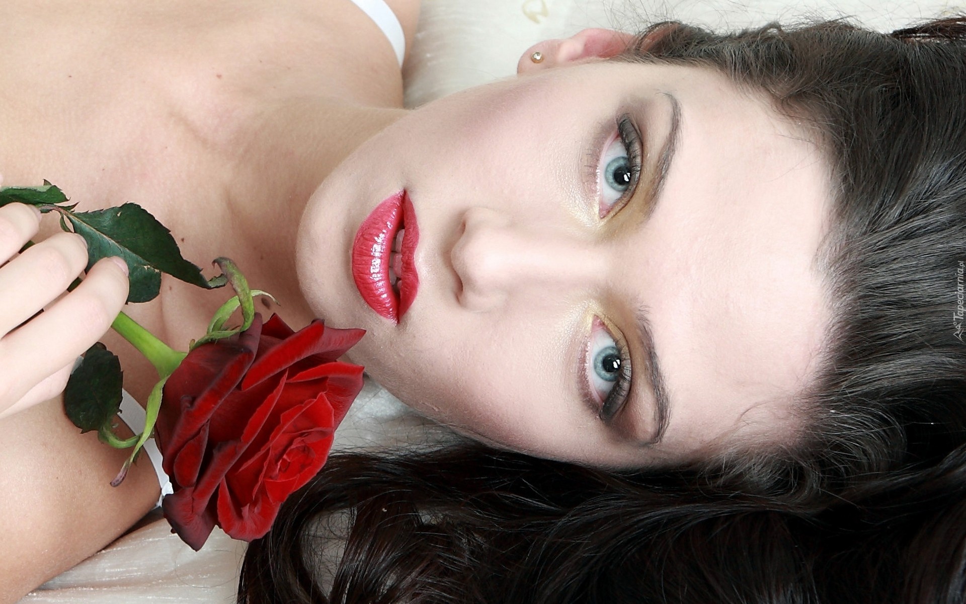 Edytor tapety: Kobieta, Twarz, Czerwona, Róża