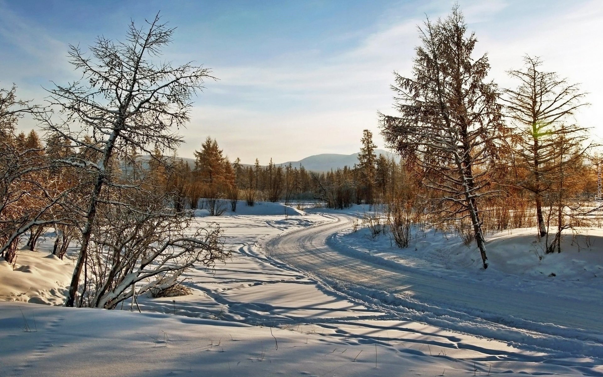 Edytor tapety: Zima, Droga, Drzewa