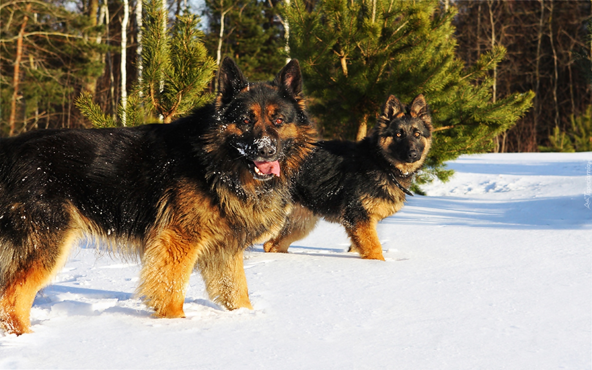 Edytor tapety: Psy, Owczarki Niemieckie, Zima, Las