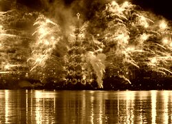 Edytor tapety: Sylwester, Zimne, Ognie, Jezioro, Miasto, Choinki