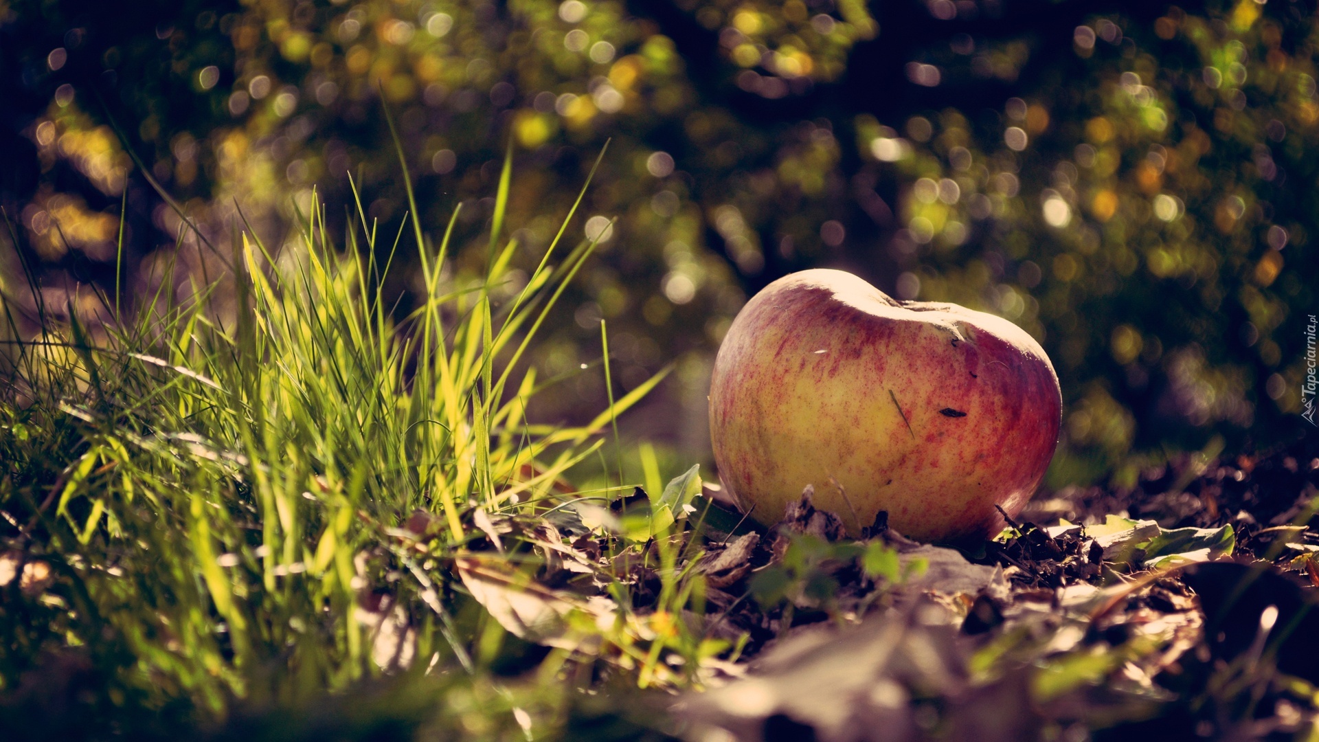Edytor tapety: Jabłko, Trawa, Ściółka