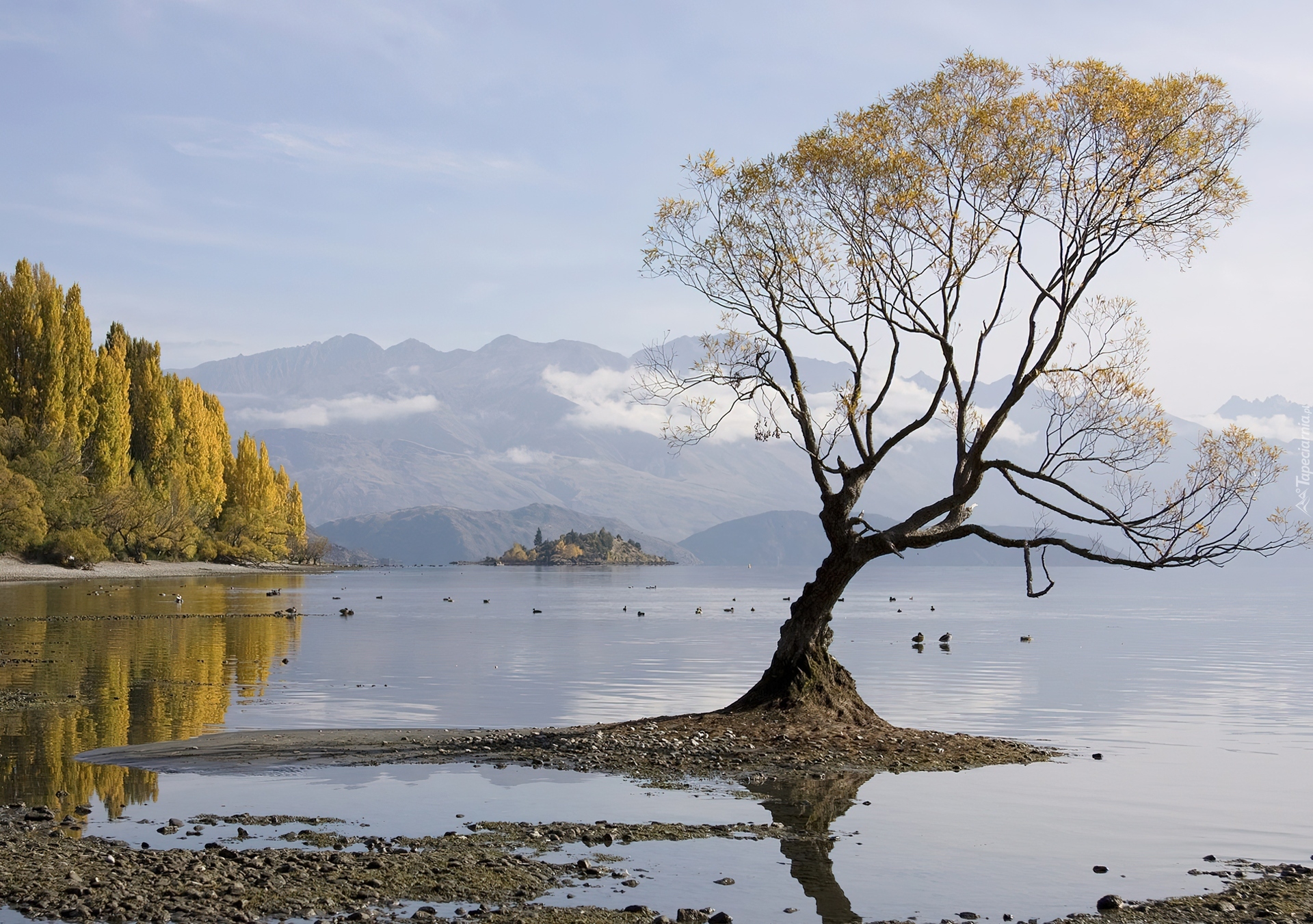 Edytor tapety: Góry, Jezioro, Samotne, Drzewo