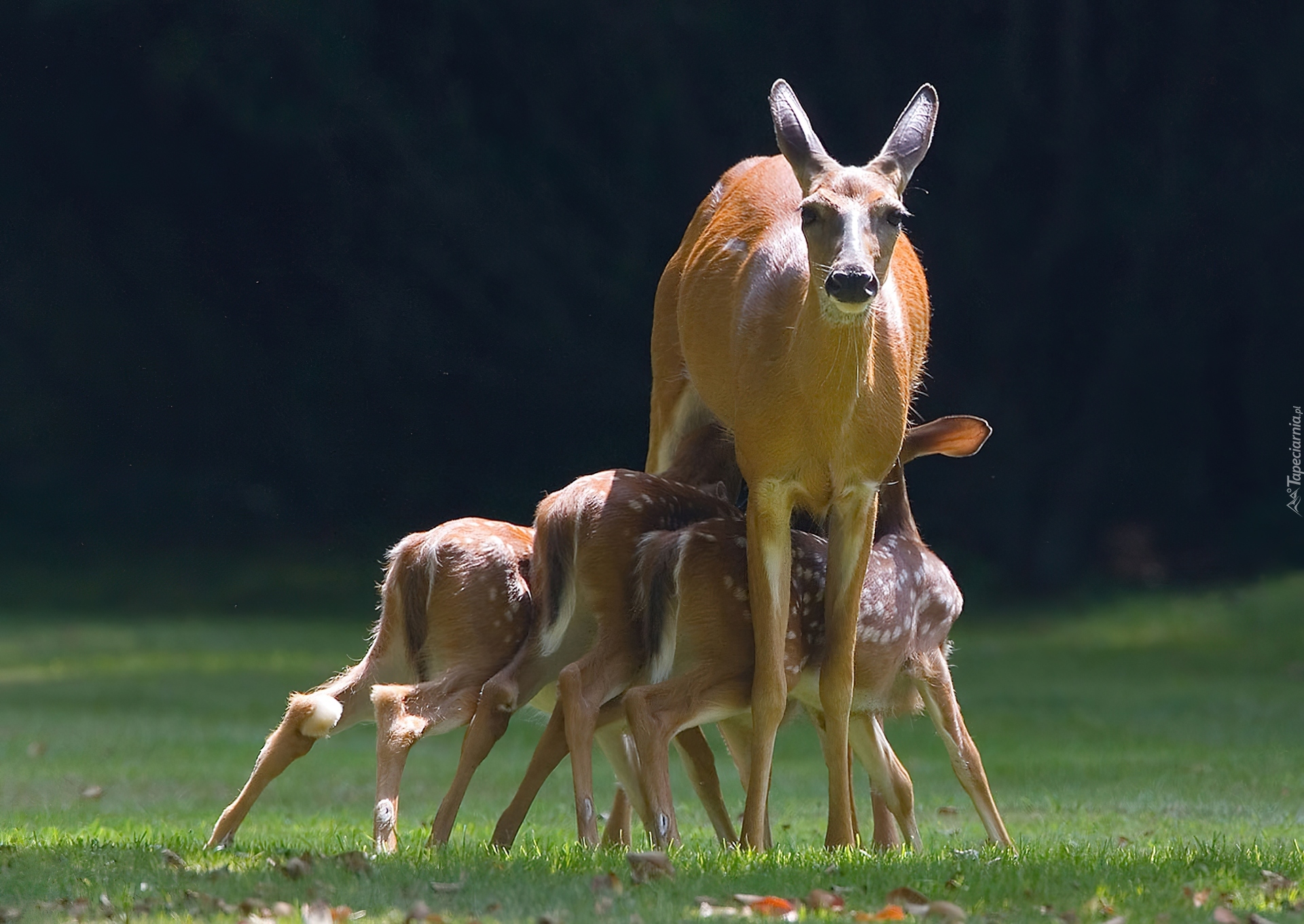 Edytor tapety: Sarna, Karmiąca, Młode, Sarenki