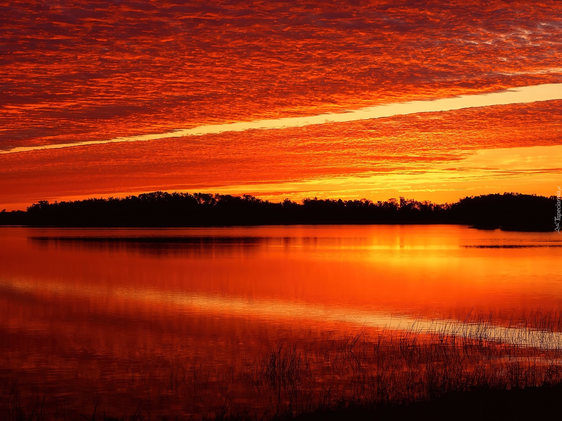 Edytor tapety: Jezioro, Chmury, Zachód, Słońca