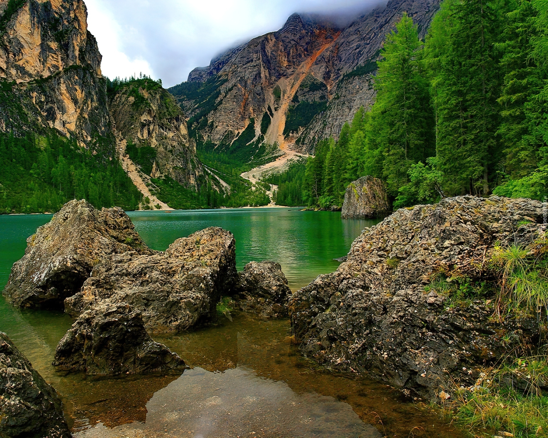 Edytor tapety: Góry, Jezioro, Lasy, Kamienie