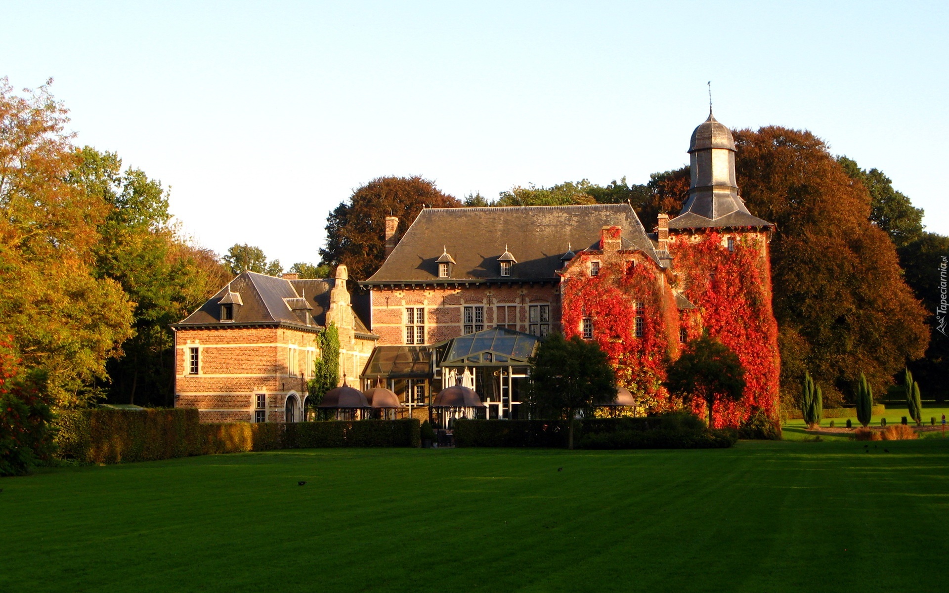 Edytor tapety: Zamek, Czerwone, Liście