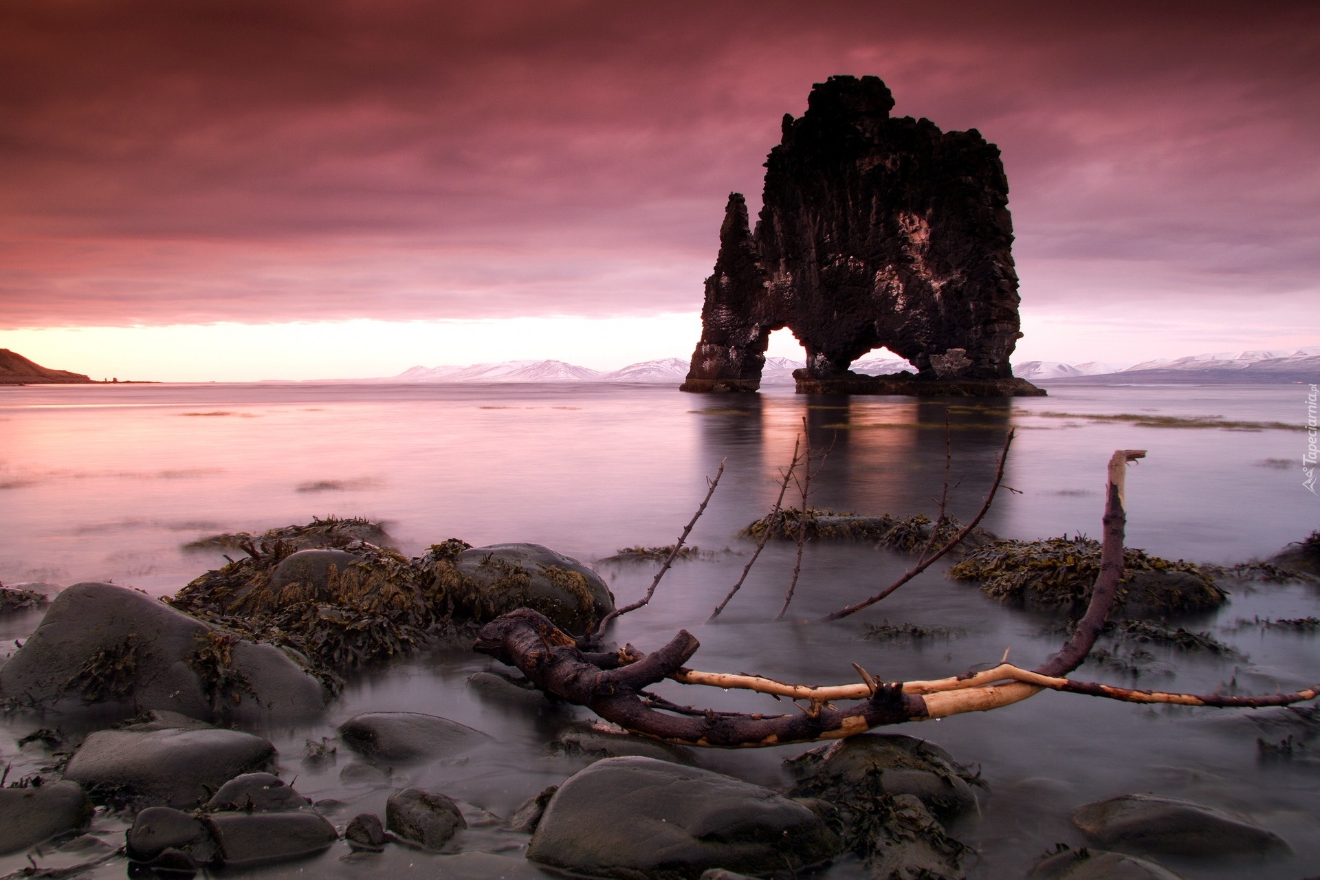 Edytor tapety: Zachód, Słońca, Góry, Skała, Jezioro