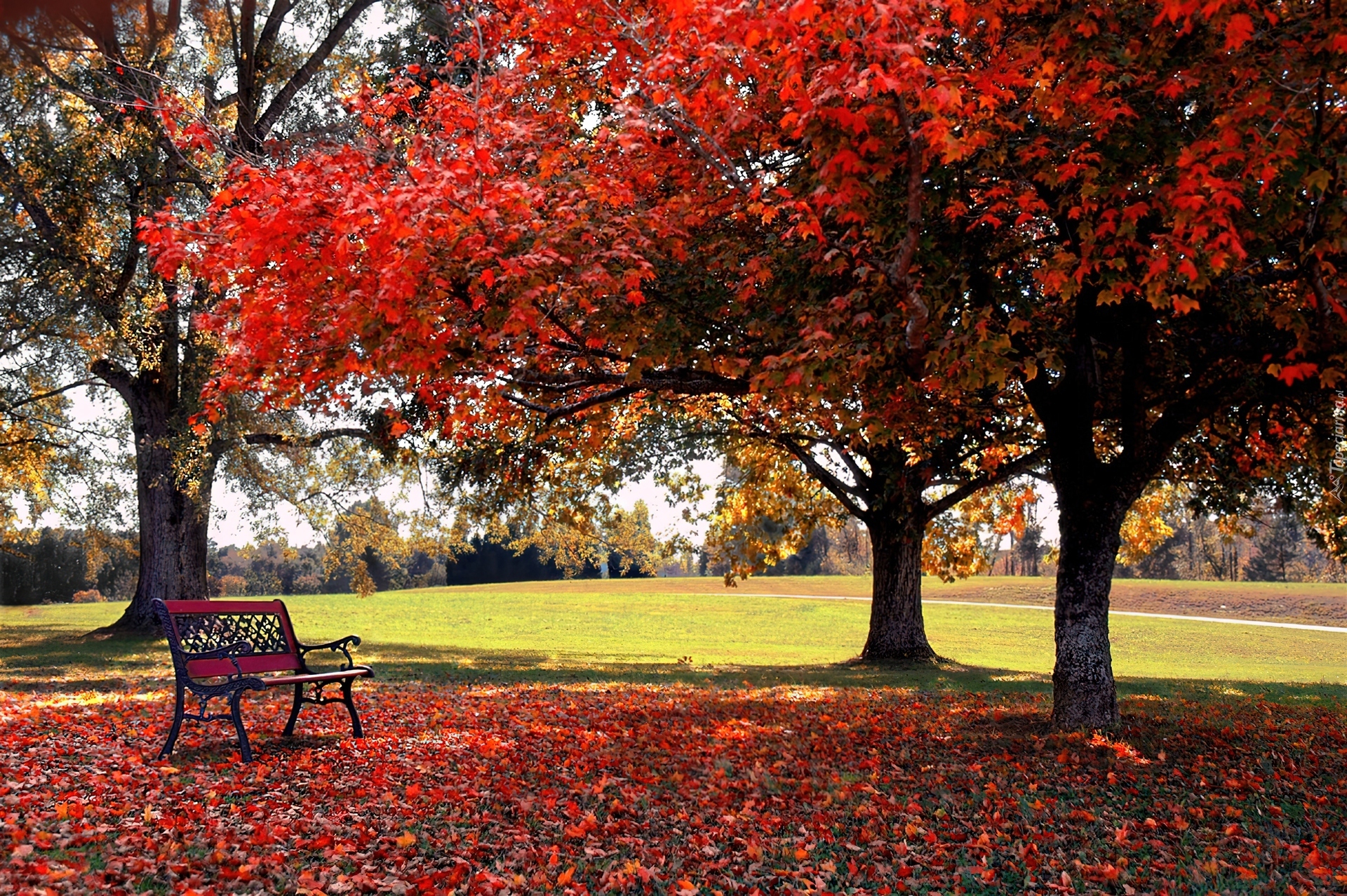 Edytor tapety: Jesień, Park, Ławeczka