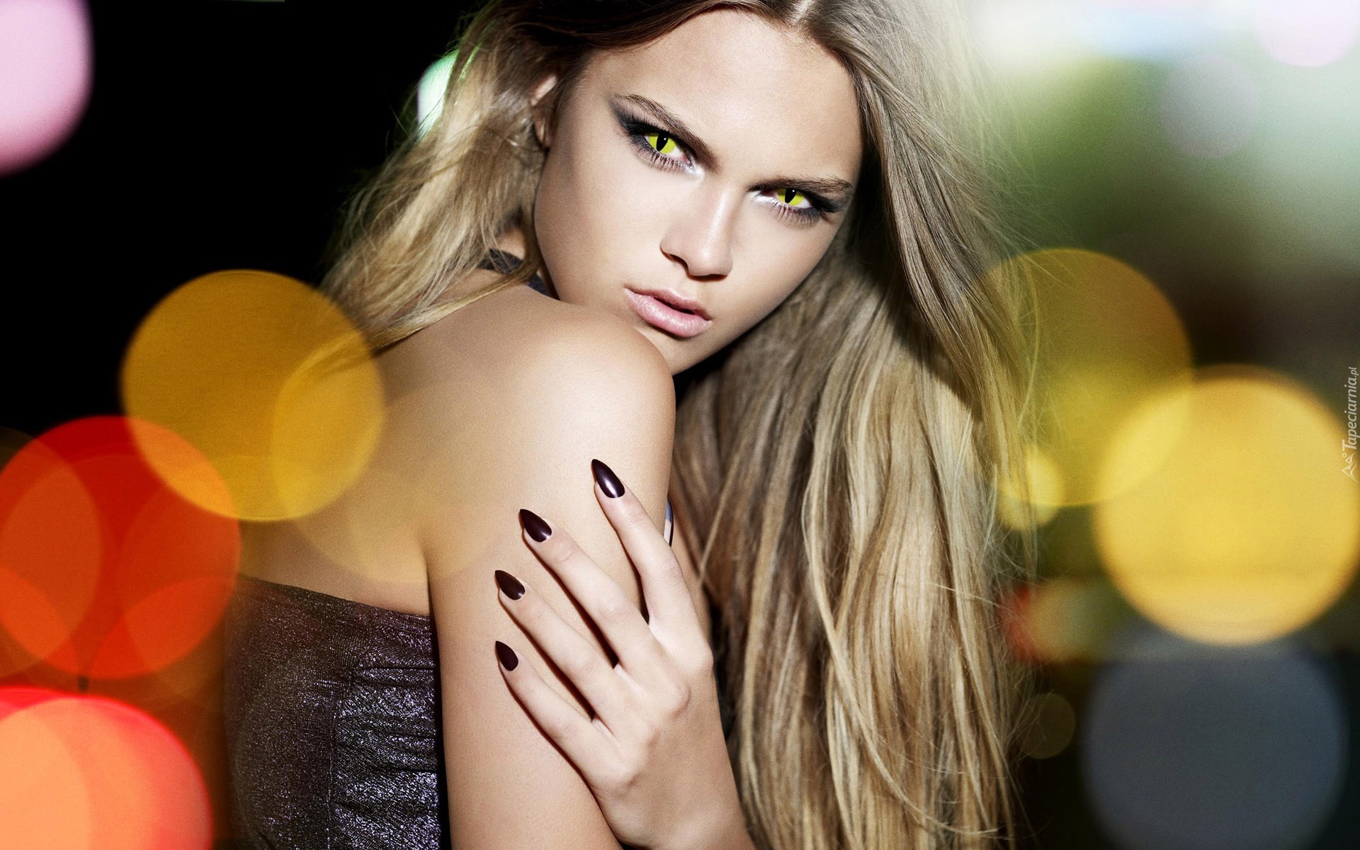 Edytor tapety: Kobieta, Spojrzenie, Zielone, Oczy, Dłoń