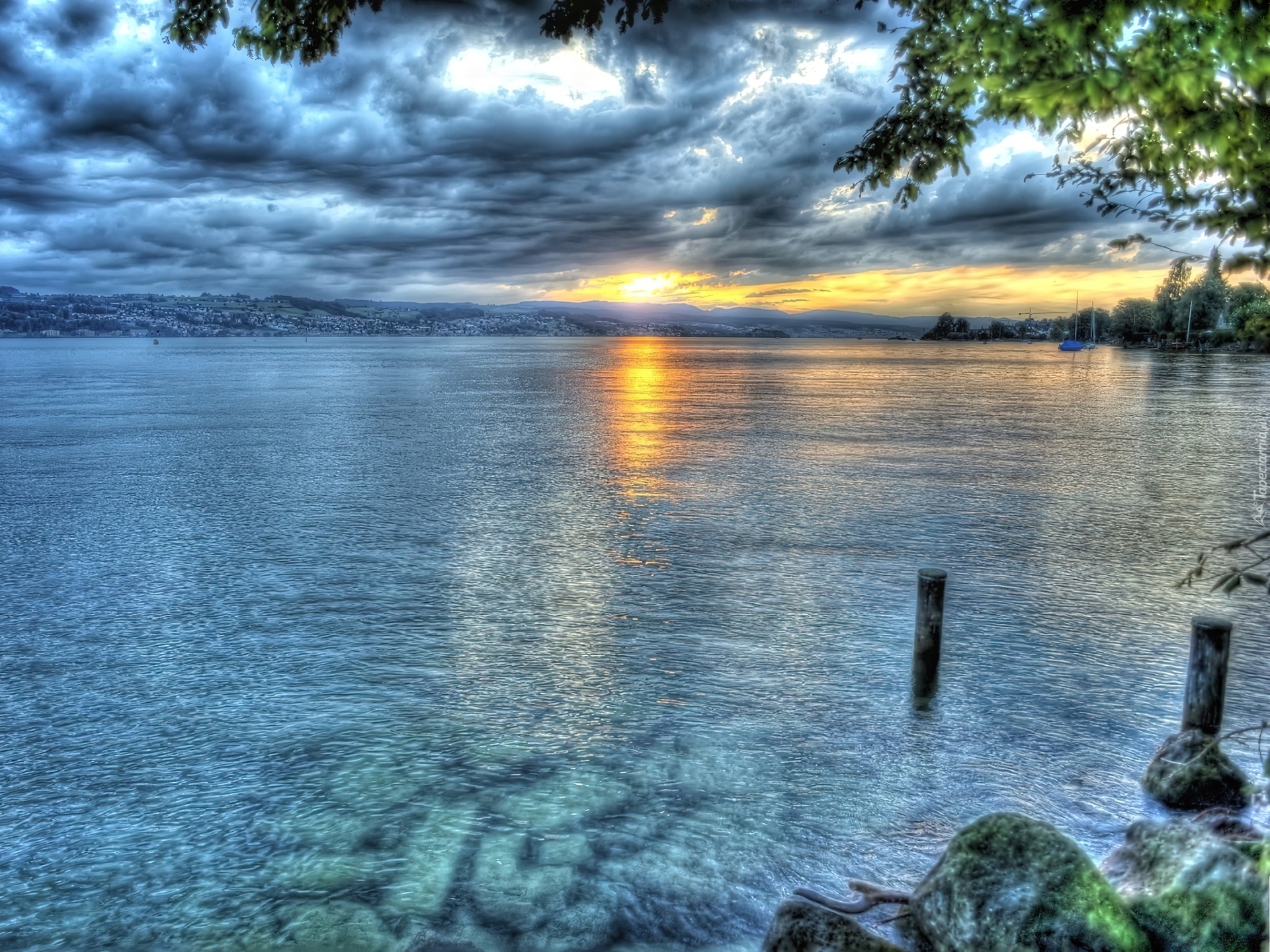 Edytor tapety: Jezioro, Zachmurzone, Niebo