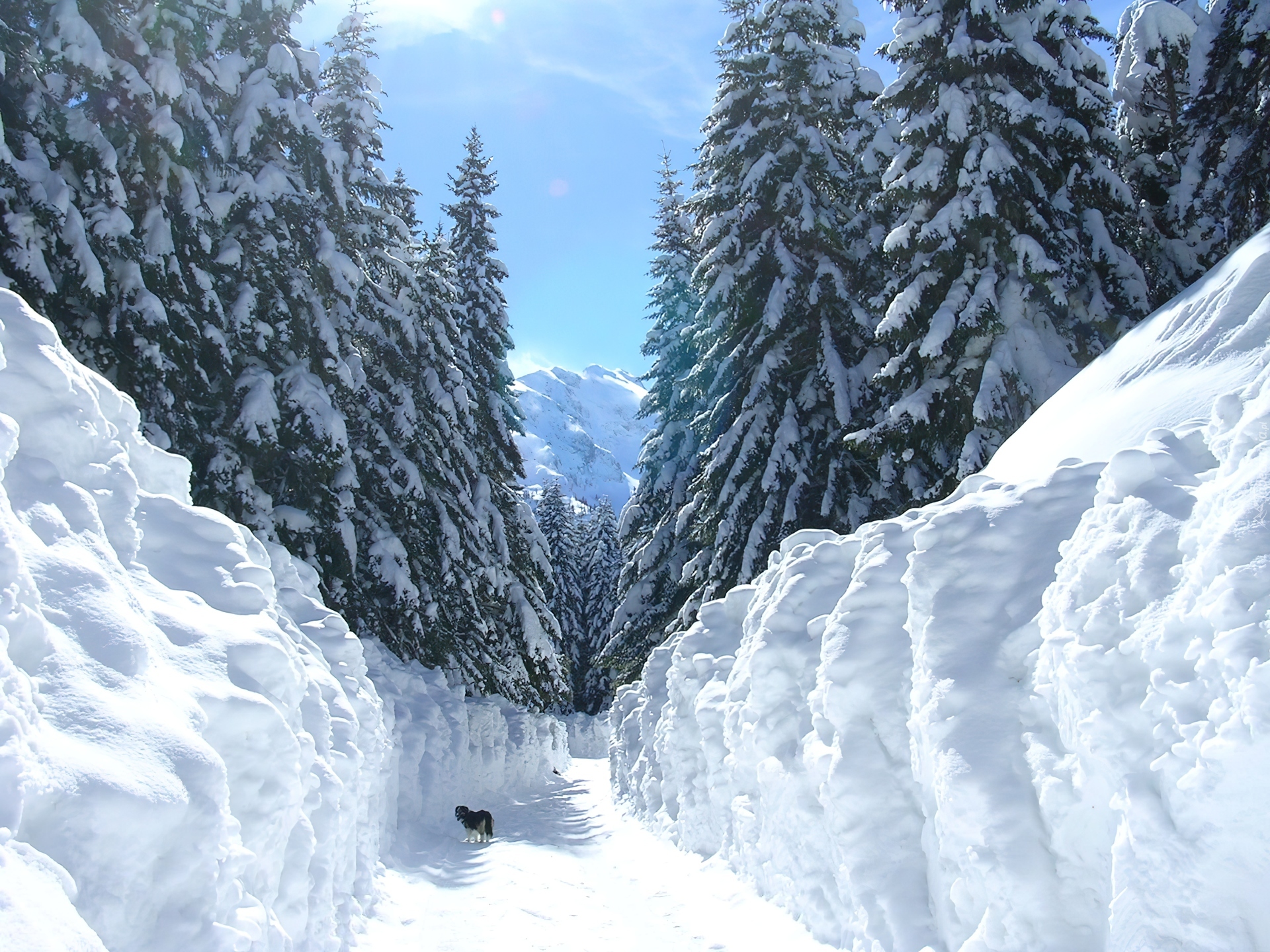 Edytor tapety: Las, Droga, Śnieg, Pies