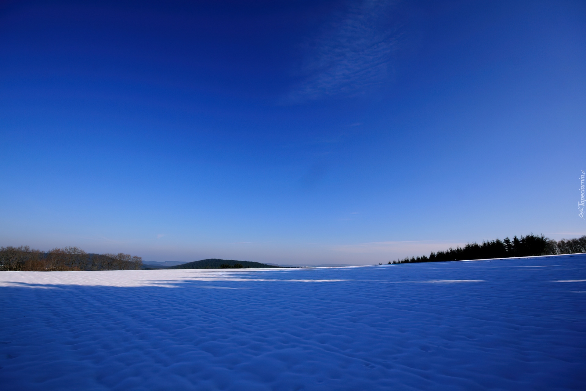Edytor tapety: Pole, Śnieg, Las, Zachód, Słońca