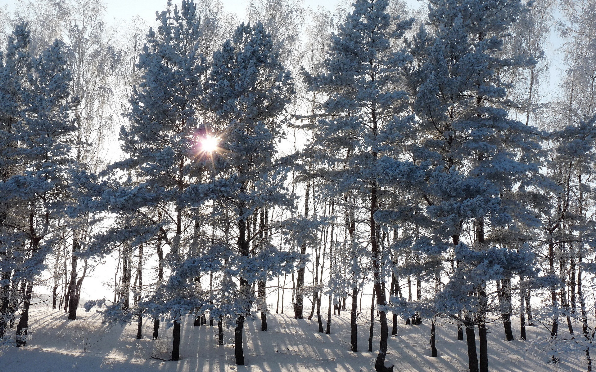 Edytor tapety: Las, Drzewa, Promienie, Słońca, Zima