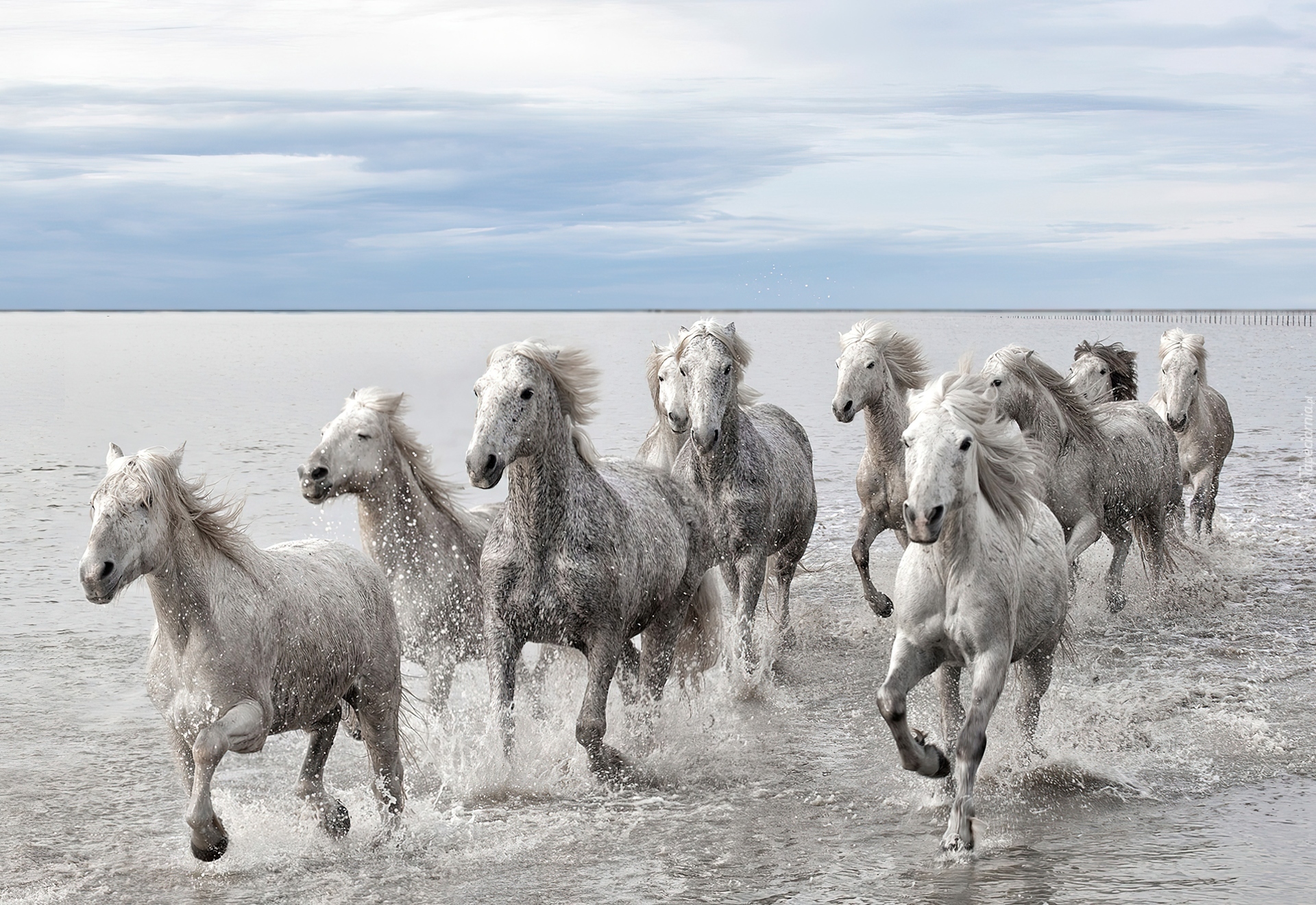 Edytor tapety: Morze, Białe, Konie