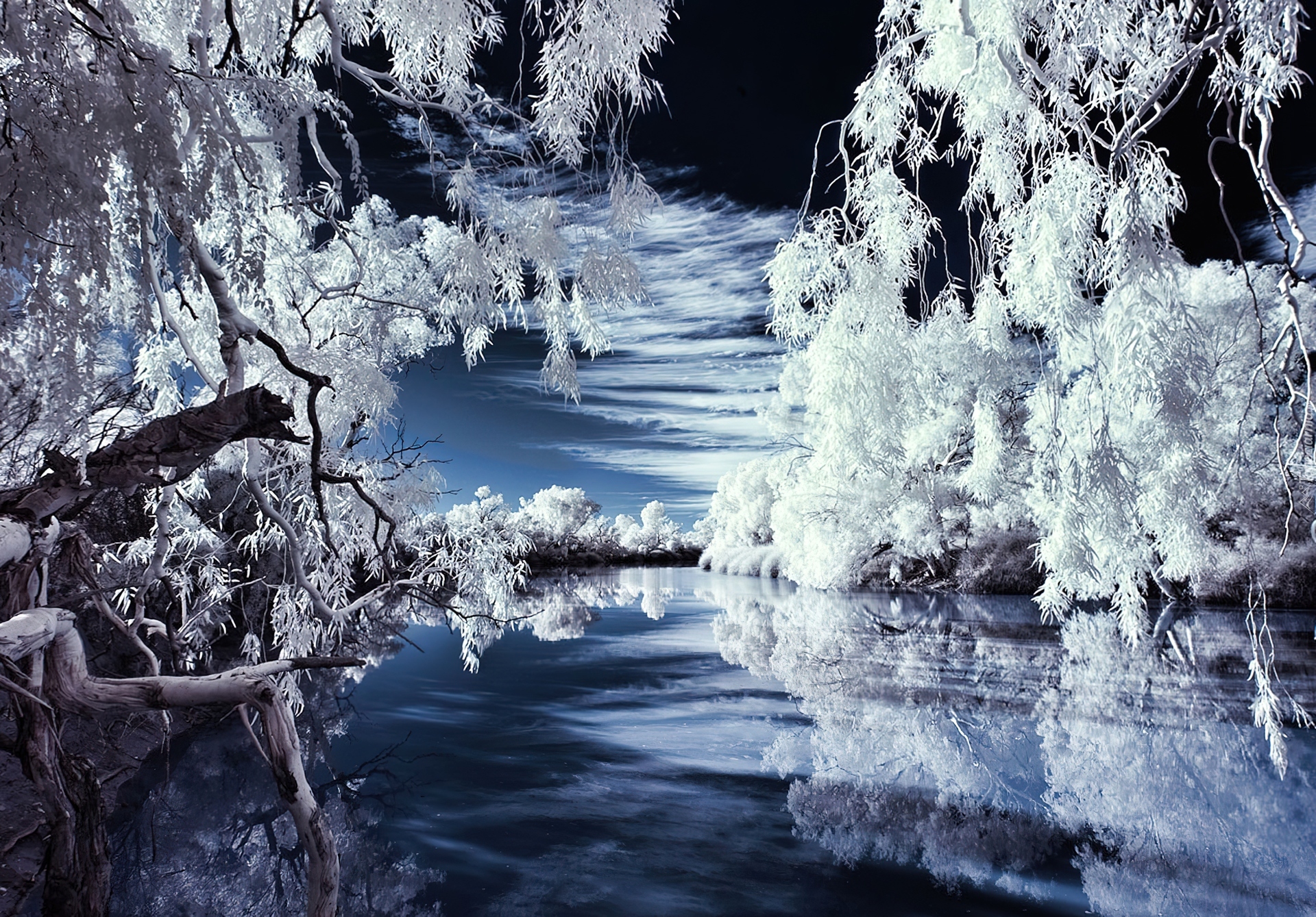 Edytor tapety: Zimowa, Aura, Rzeka, Drzewa