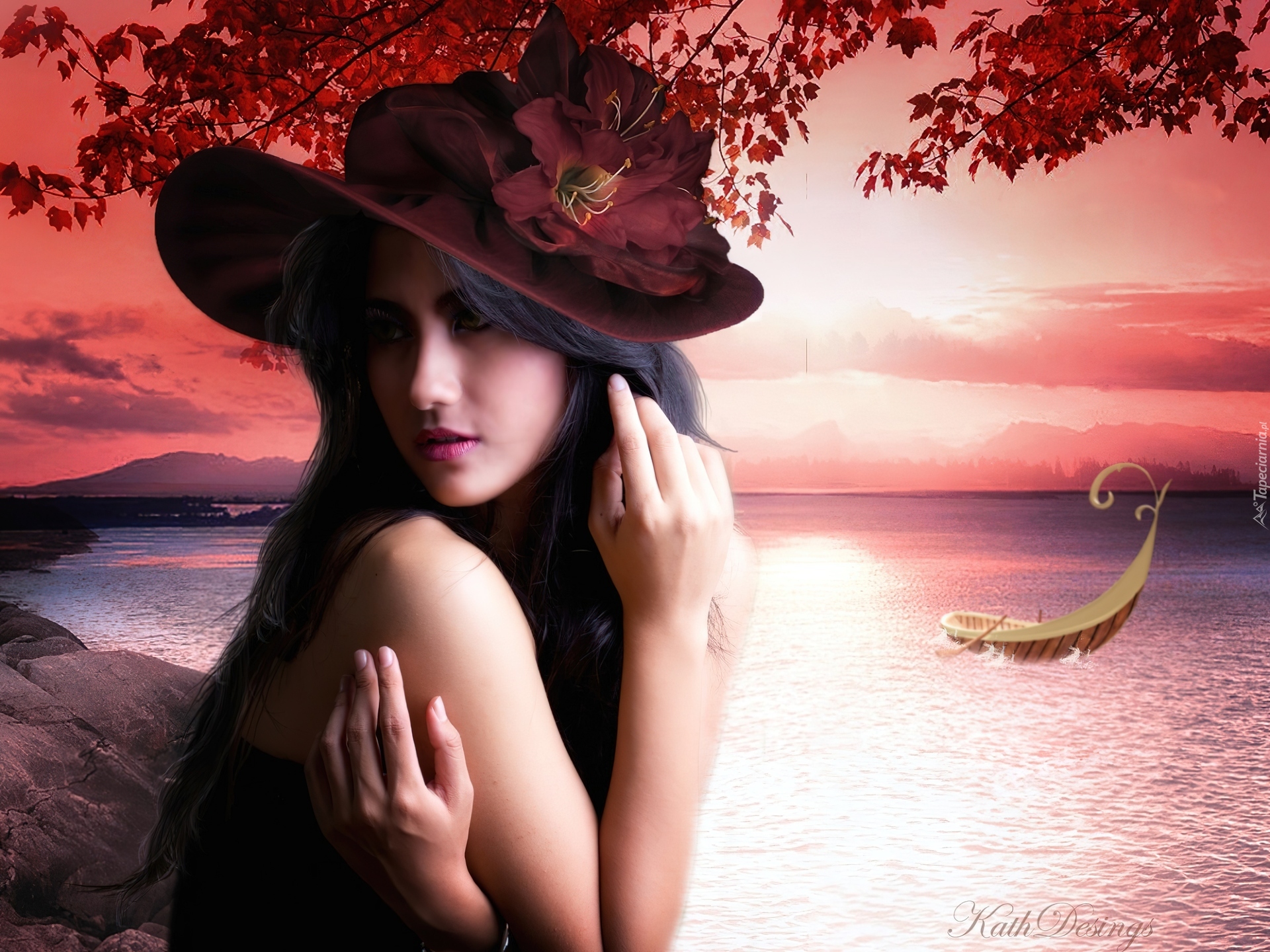 Edytor tapety: Kobieta, Kapelusz, Jezioro