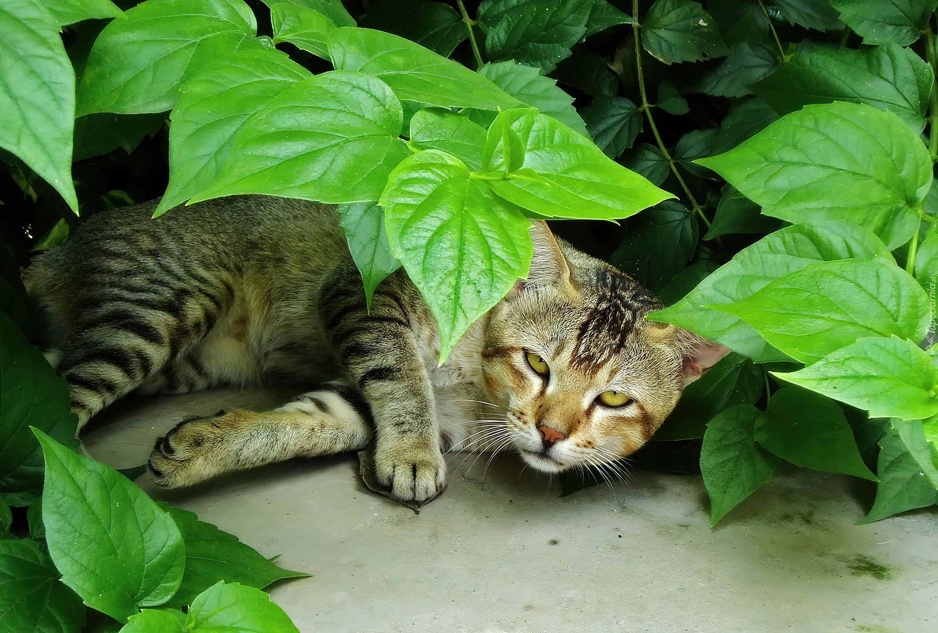Edytor tapety: Leżący, Kotek, Liście