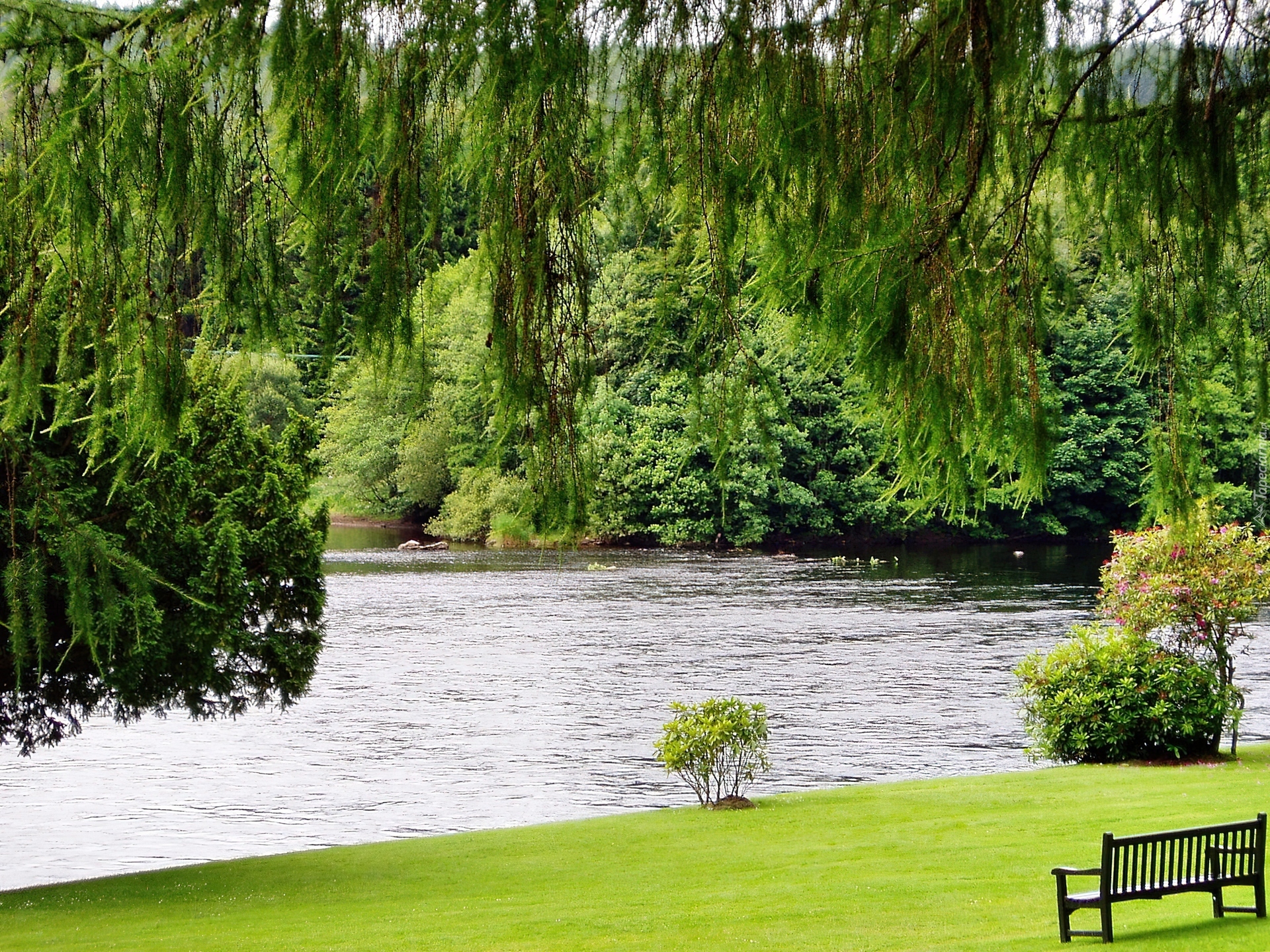 Edytor tapety: Park, Jeziorko, Ławka, Zieleń