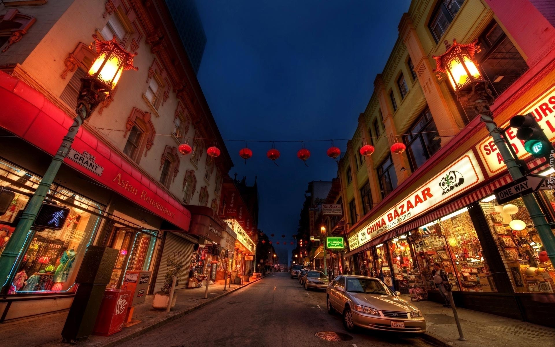 Edytor tapety: Chinatown, Domy, Ulica, Samochody