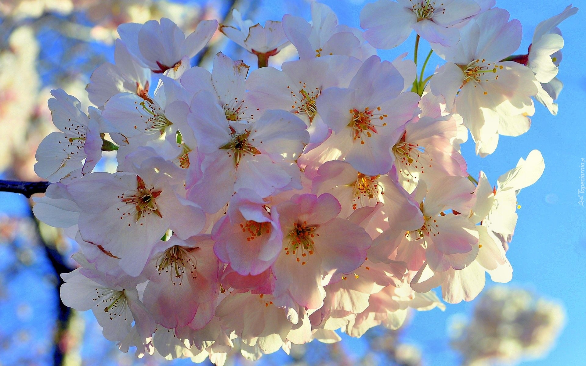 Edytor tapety: Kwitnąca, Gałązka, Owocowego, Drzewa, Niebo