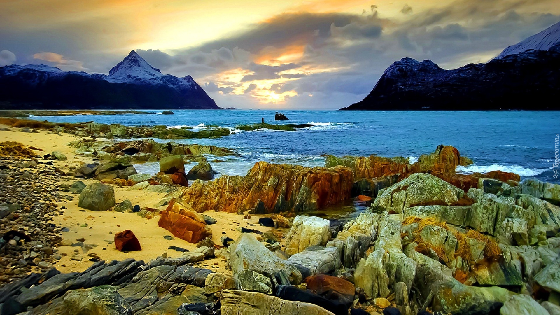 Edytor tapety: Góry, Morze, Plaże, Kamienie