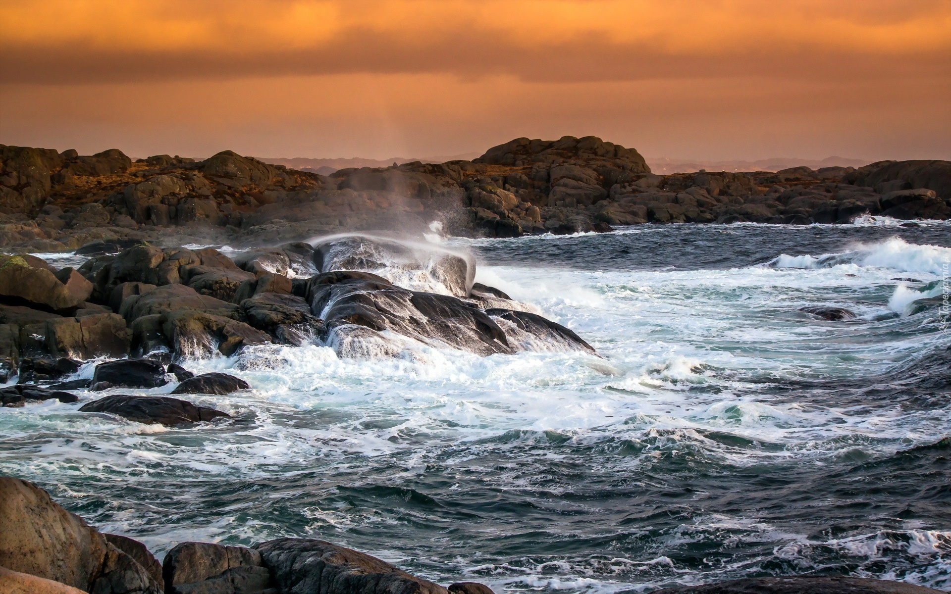 Edytor tapety: Zachód, Słońca, Skały, Morze