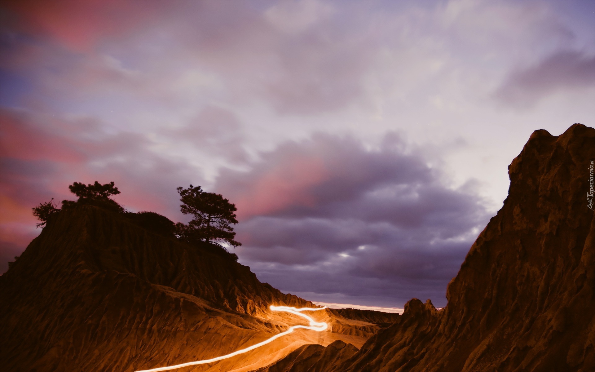 Edytor tapety: Chmury, Góry, Drzewa