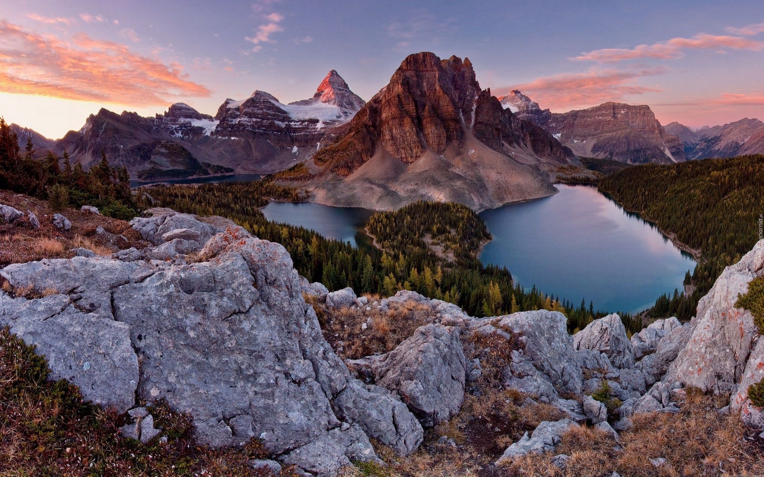 Edytor tapety: Zachód, Słońca, Skały, Jeziora