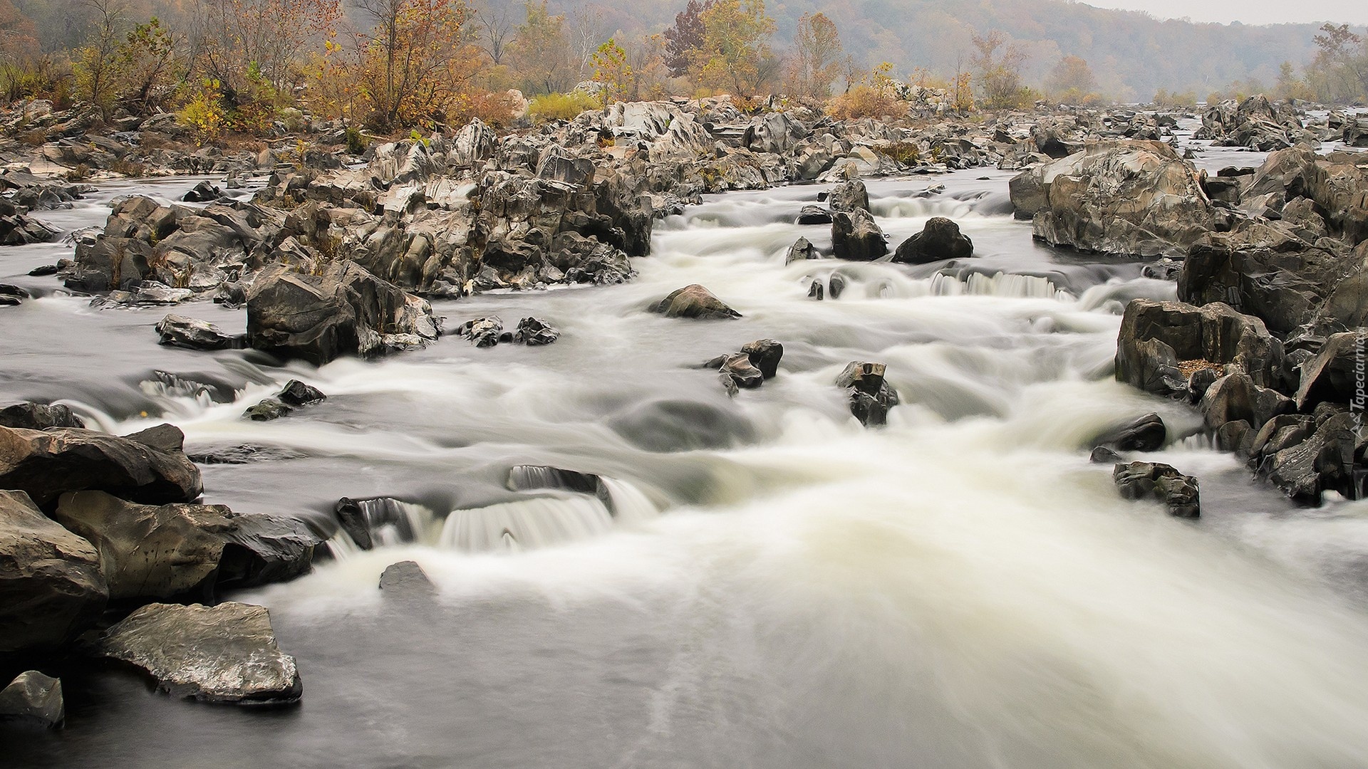 Edytor tapety: Jesień, Rwąca, Rzeka, Skały, Kamienie