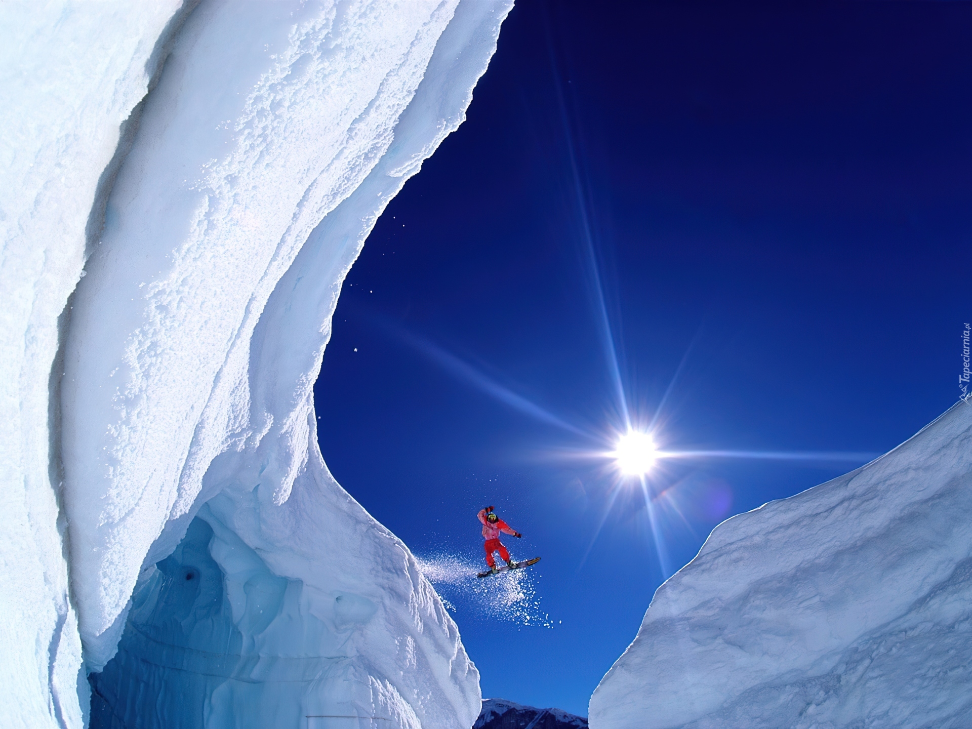 Edytor tapety: Niebo, Słońce, Góry, Snowboardzista