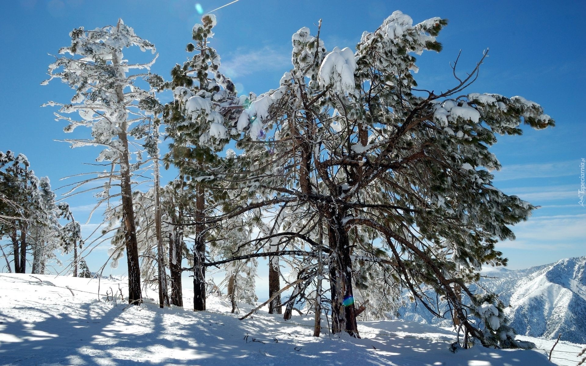 Edytor tapety: Zima, Góry, Ośnieżone, Drzewa