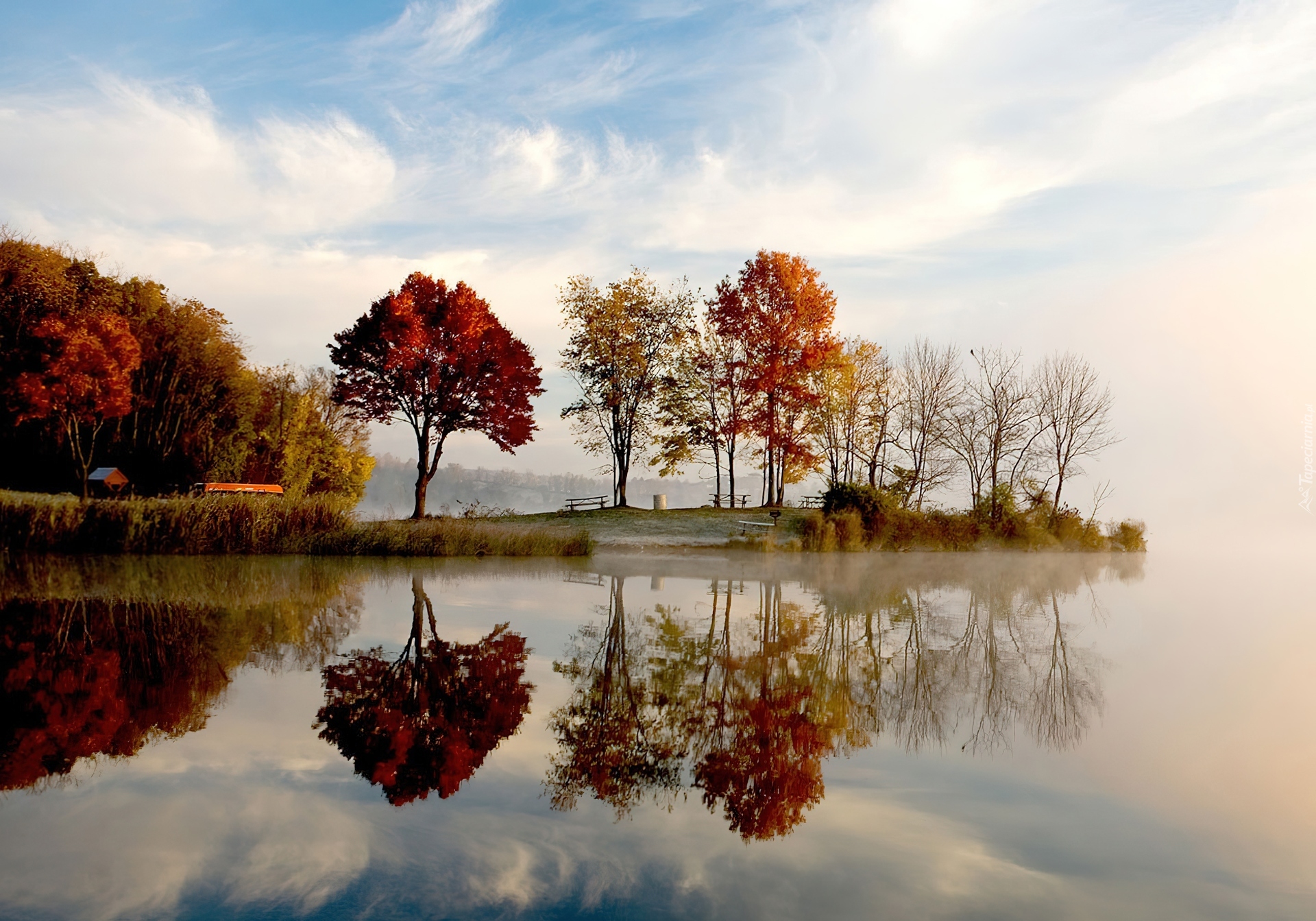 Edytor tapety: Jesień, Jezioro, Drzewa