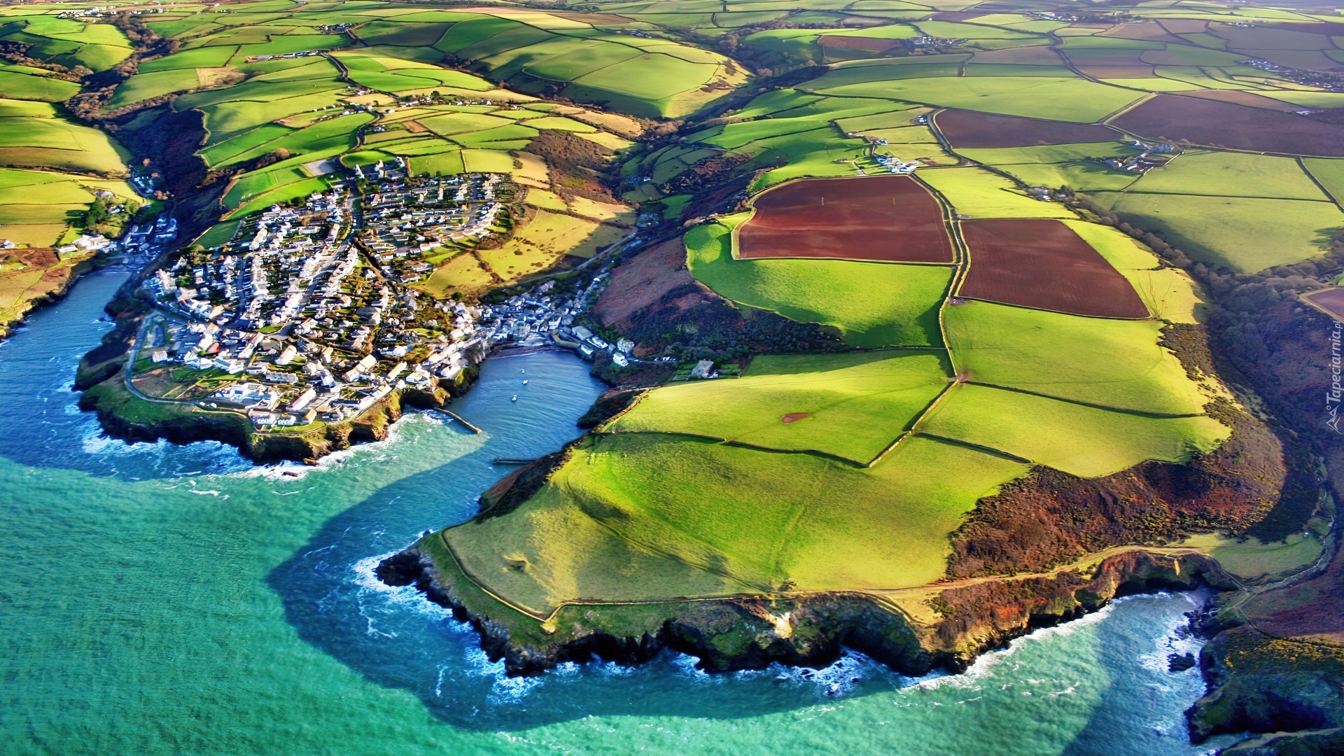 Edytor tapety: Wybrzeże, Pola, Uprawne, Miasteczko