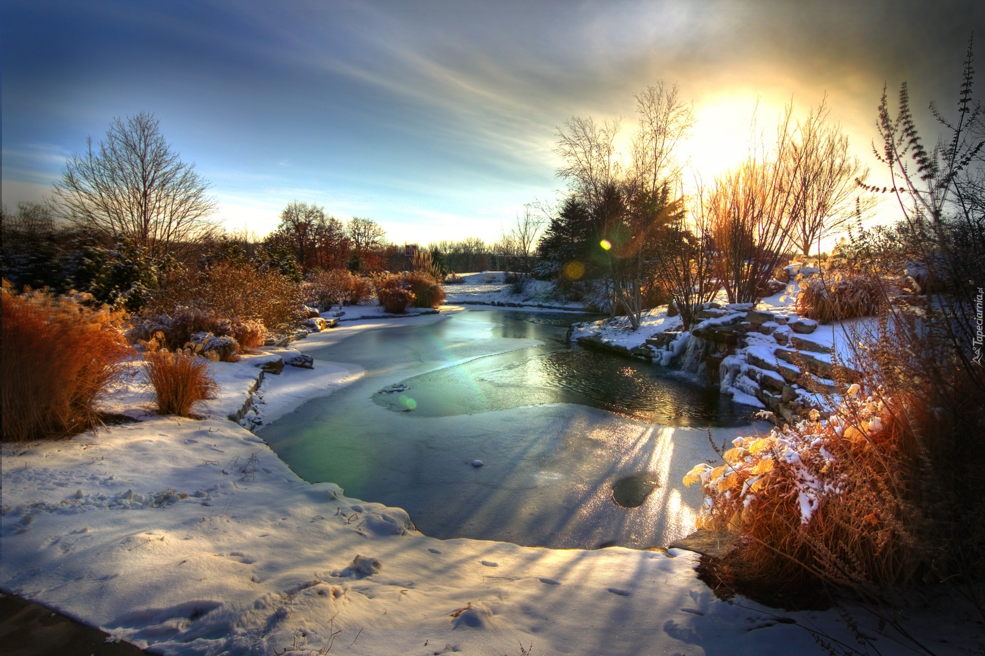 Edytor tapety: Zachód, Słońca, Rzeka, Rośliny