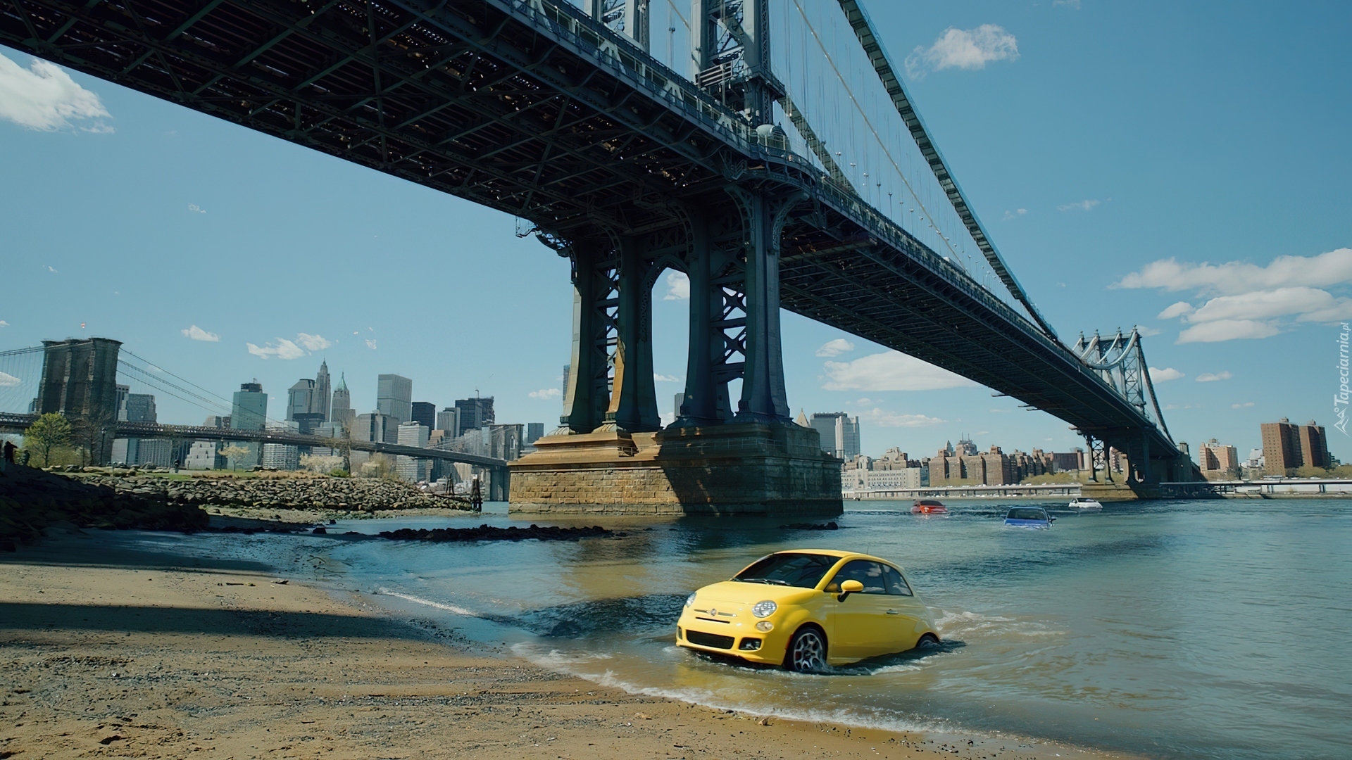 Edytor tapety: Panorama, Miasta, Most, Woda, Fiat 500