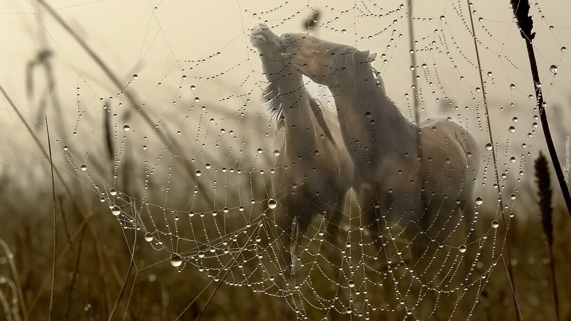 Edytor tapety: Konie, Pajęczyna, Krople, Rosy