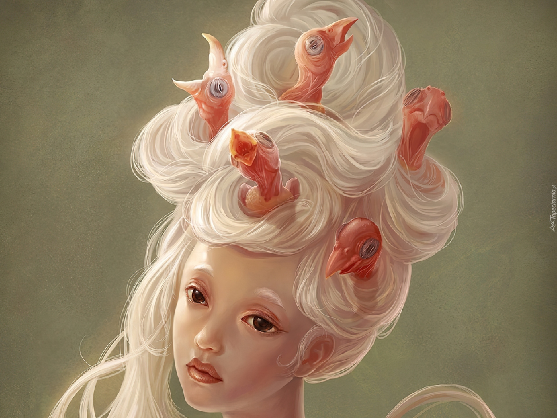 Edytor tapety: Dziewczyna, Fryzura, Ptaszki