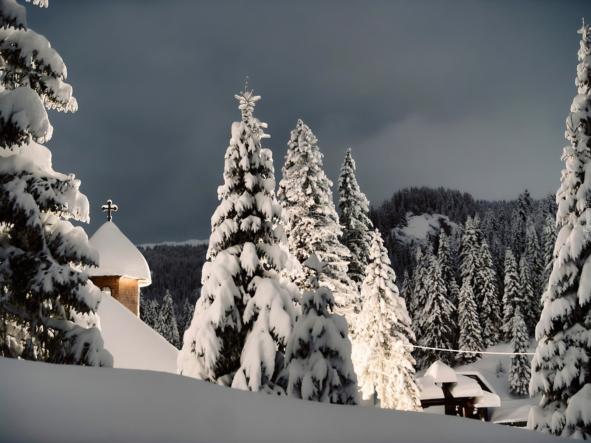 Edytor tapety: Zima, Las, Kościół, Zachmurzone, Niebo