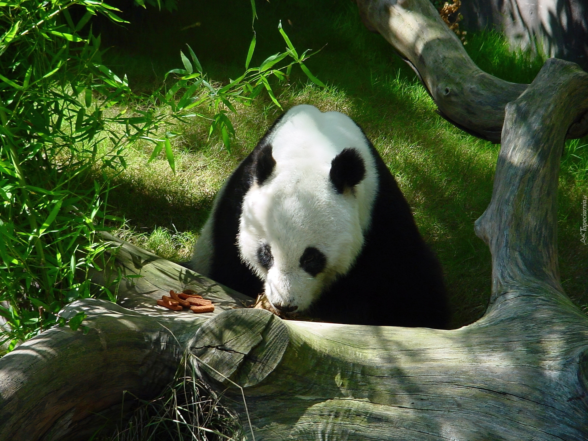 Edytor tapety: Panda, Kłoda, Zieleń