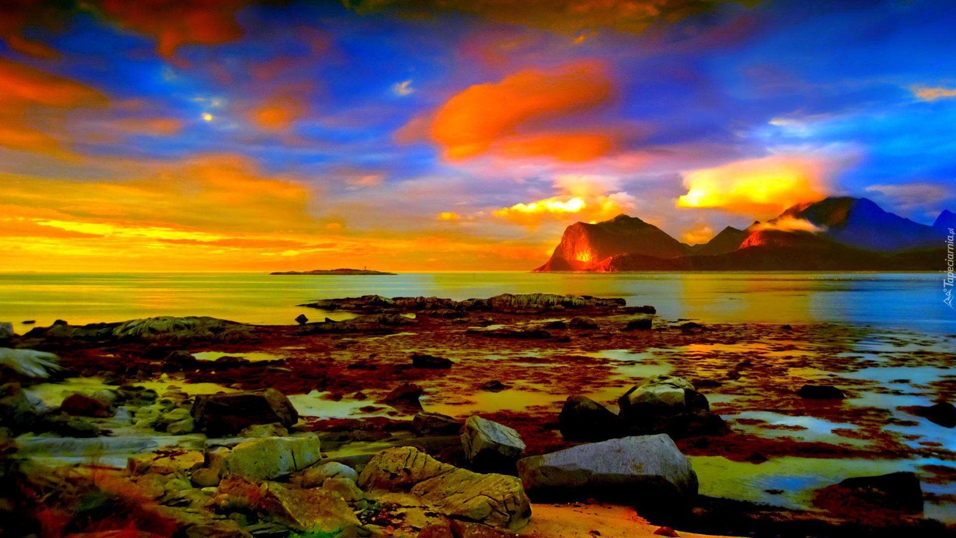 Edytor tapety: Jezioro, Kamienie, Kolorowe, Niebo