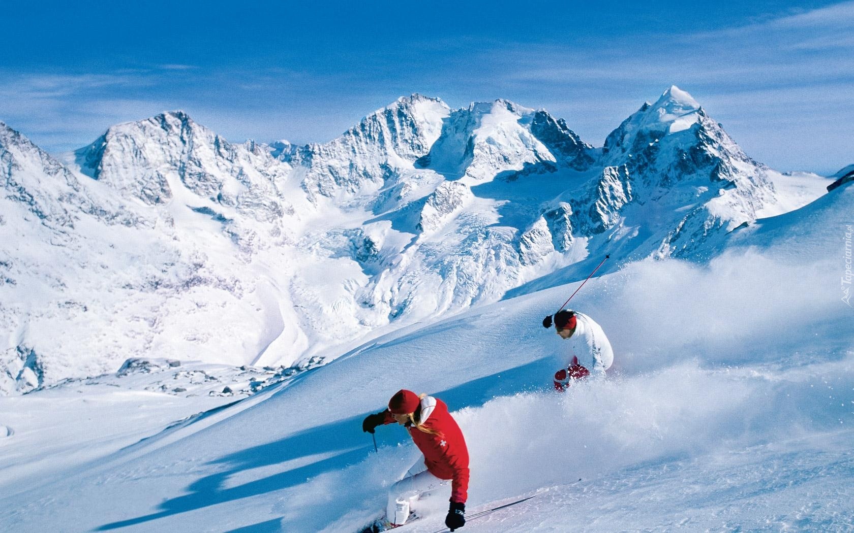 Edytor tapety: Góry, Narciarze, Zjazd, Zima