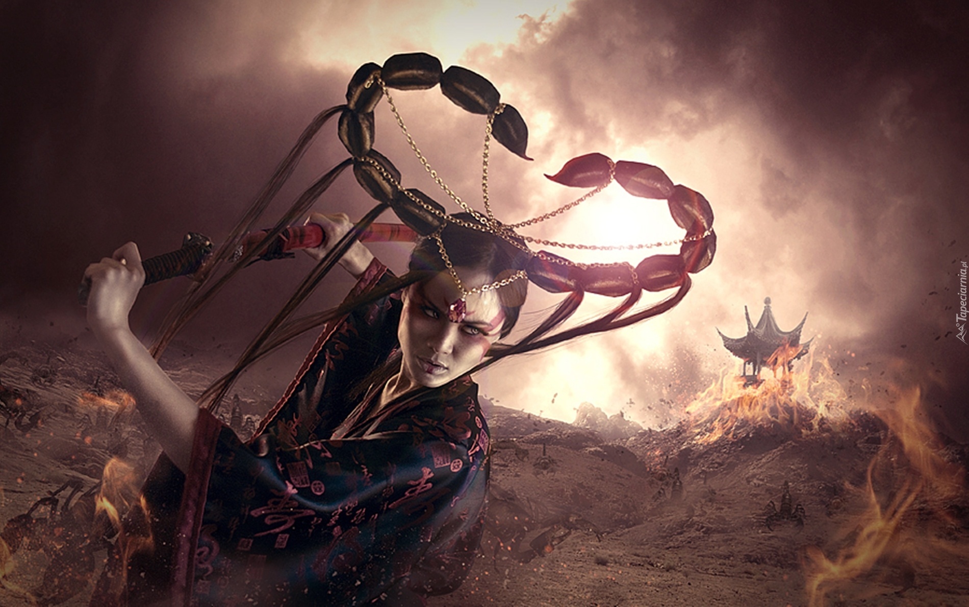 Edytor tapety: Wojowniczka, Kimono, Katana