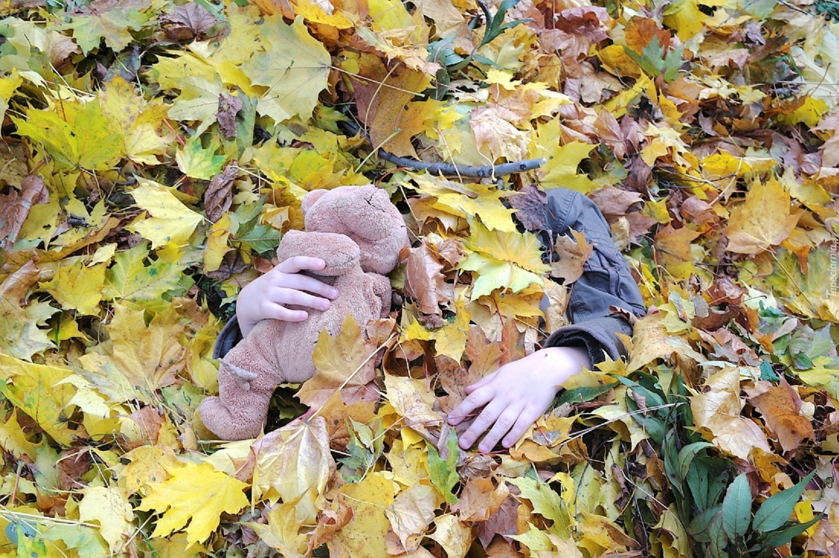 Edytor tapety: Dziecko, Liście, Misiek