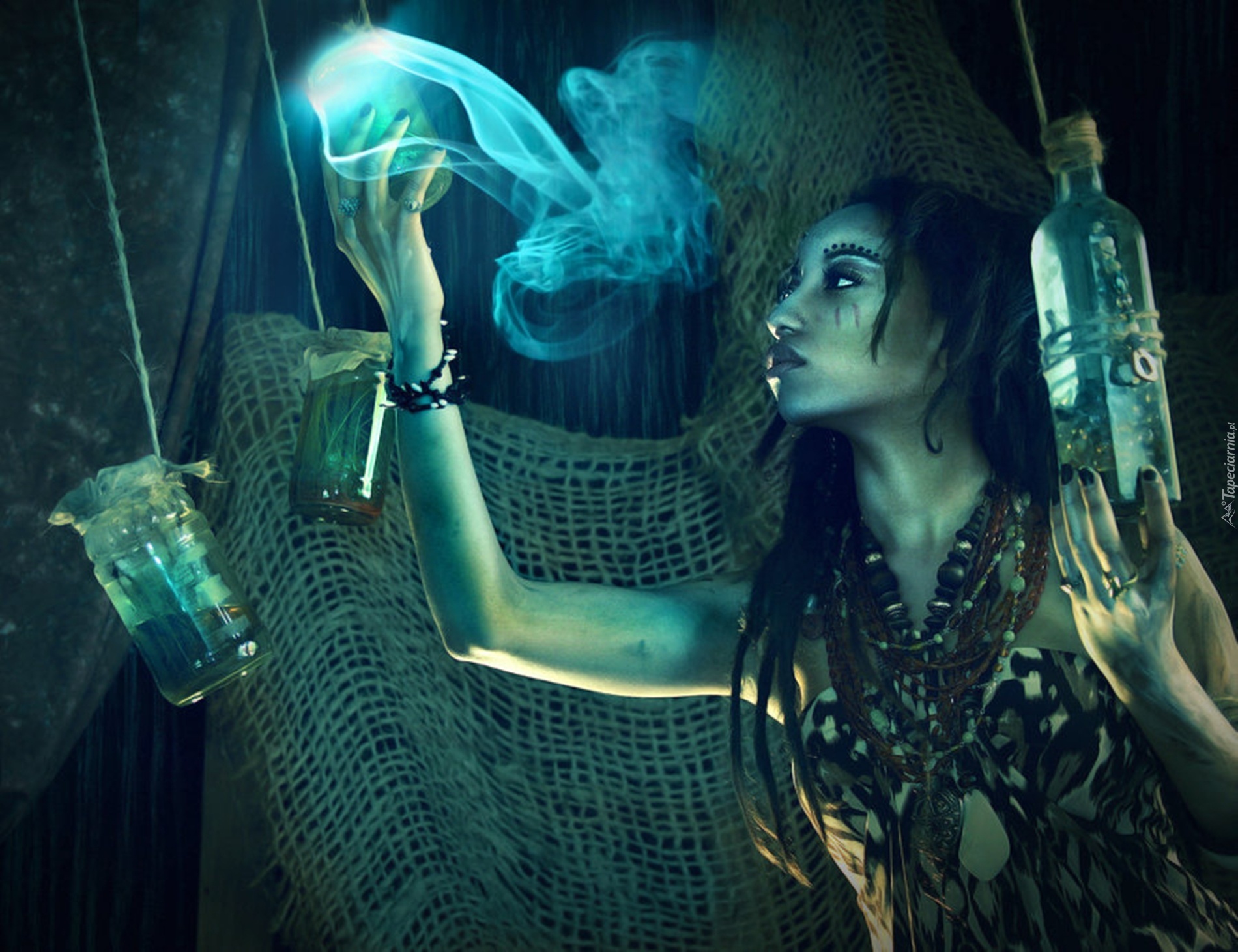 Edytor tapety: Czarodziejka, Magia, Butelka, Rytuał
