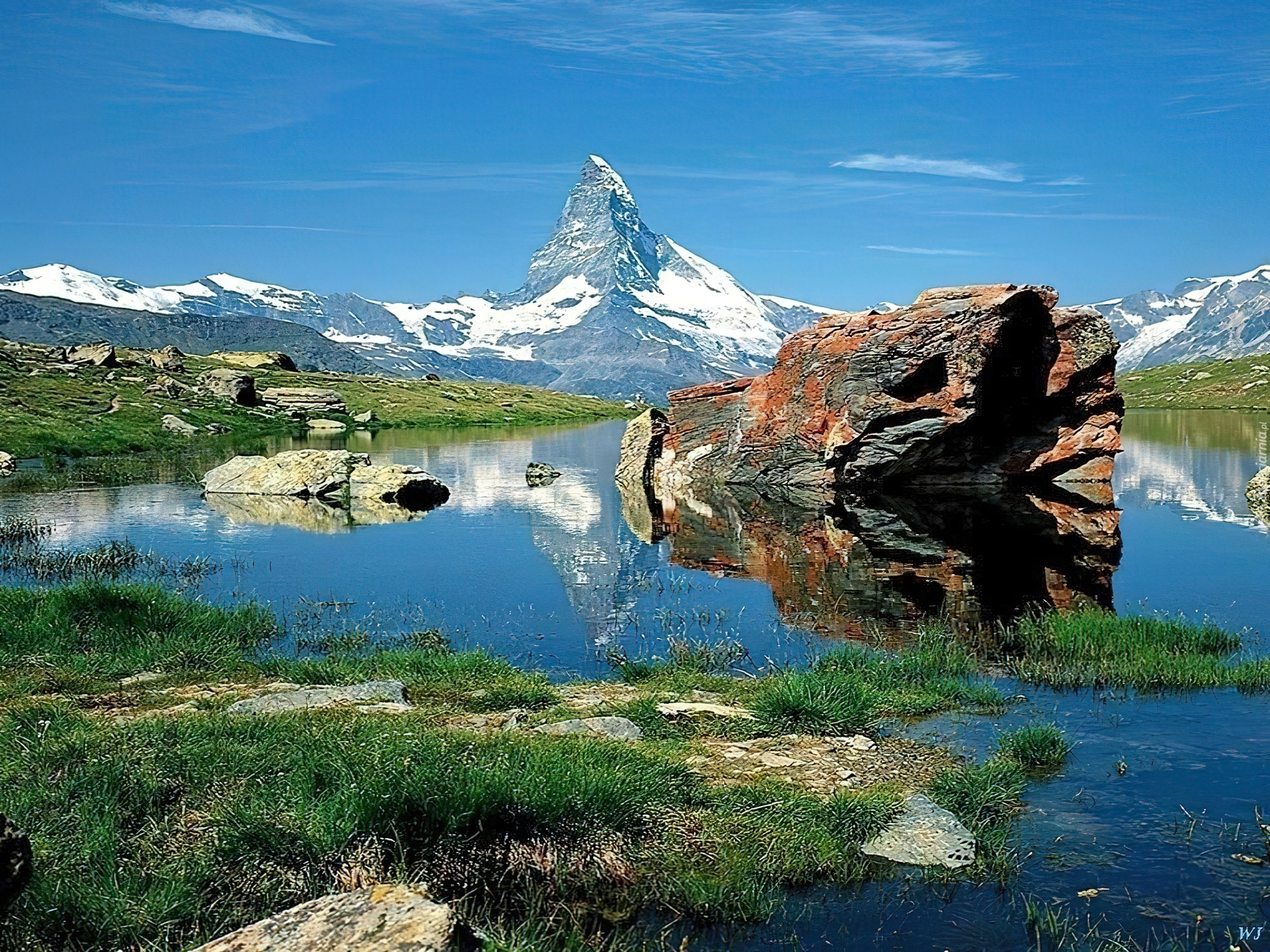 Edytor tapety: Jezioro, Skały, Góry, Matterhorn, Szwajcaria