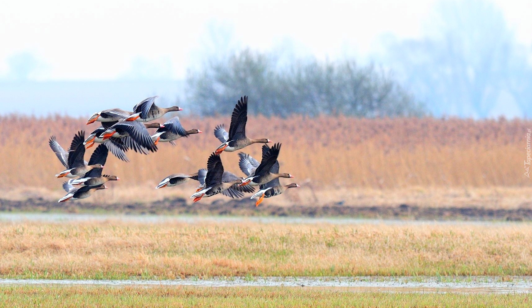Edytor tapety: Gęsi, Trawy, Drzewa
